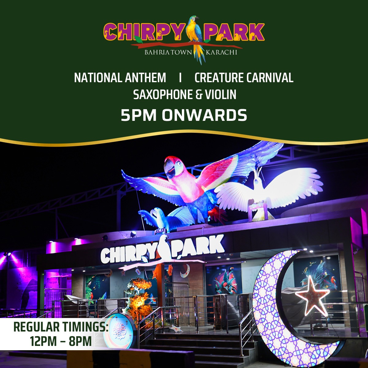 For those seeking a serene beginning to this joyous day, Chirpy Park beckons you from 5:00 pm onwards. The evening opens with a heartfelt rendition of the national anthem, followed by a burst of creativity in the form of a vibrant carnival. The melodies of a saxophone and violin will create an aura of serenity, inviting everyone to reflect on the day’s significance.
