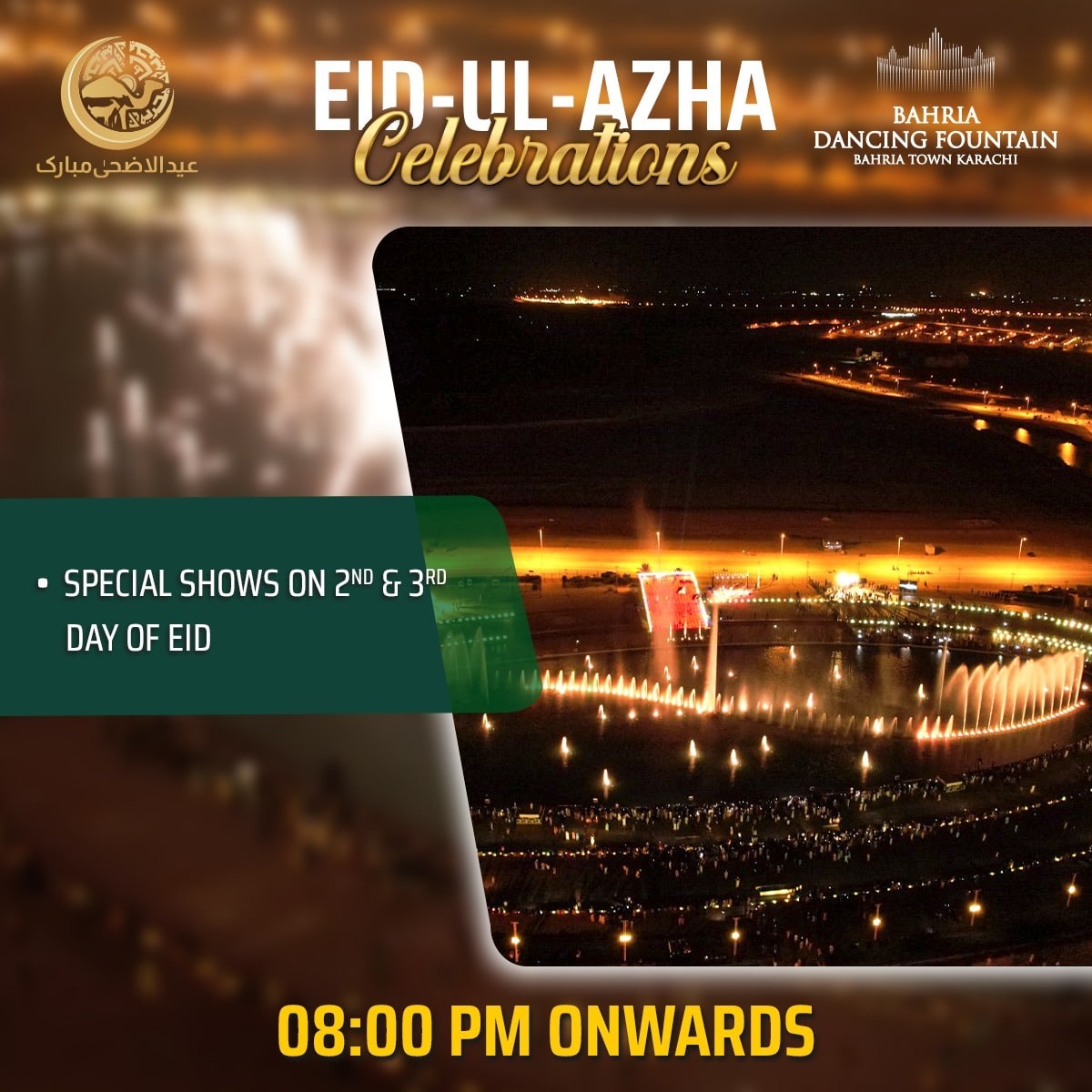 Join us at Bahria Town Karachi to celebrate Eid Ul Azha with a blend of tradition, culture, and modern entertainment. We look forward to welcoming you and your family to this spectacular event.